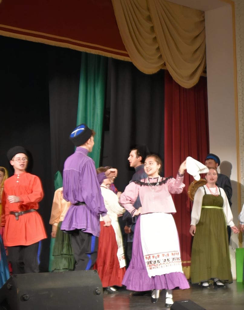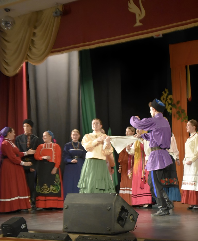 Казачьи распевы широки и глубоки. Голоса студентов учебного народного хора МГКИиК звучали слаженно и профессионально. В этом огромная заслуга руководителя Елены Корсуновой, педагог – Ольга Глинина, концертмейстер – Игорь Богачев.