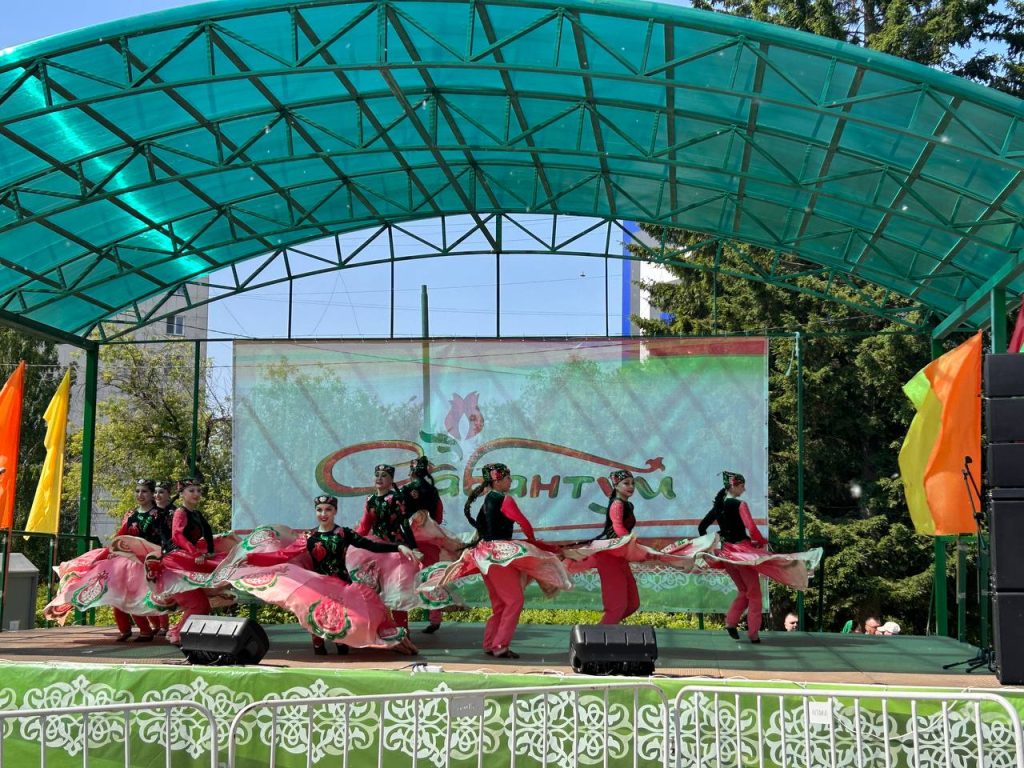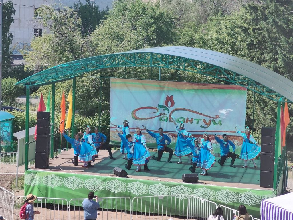 На главной сцене шла яркая насыщенная концертная программа гостей праздника: Заслуженный коллектив народного творчества РФ ансамбль народного танца «Ляйсян» (г.Учалы), артисты Республики Татарстан, а также творческие коллективы и солисты г.Миасса.