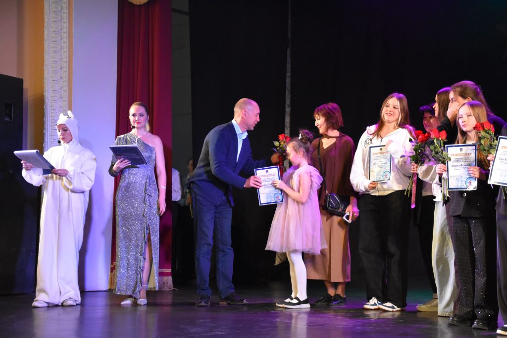 Почётные гости поднялись на праздничную сцену, чтобы наградить лучших воспитанников и творческие коллективы ДШИ №1, ДК «Бригантина», Дом народного творчества, Центральную библиотечную систему, Городской дом культуры, ДШИ №2, ЦД «Строитель», ДШИ №3 и ДШИ №4.