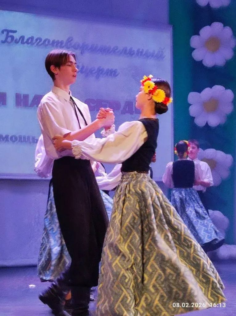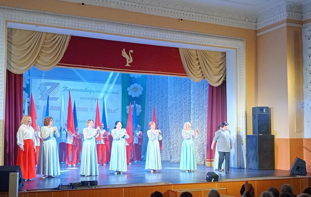 Финальную яркую точку в благотворительном концерте поставил НК ансамбль танца «Рефлексия» Центра досуга (рук. Анастасия Трапезникова, Виктория Кожевникова) и вокальный ансамбль «Поющие сердца» песней «Россия моя».