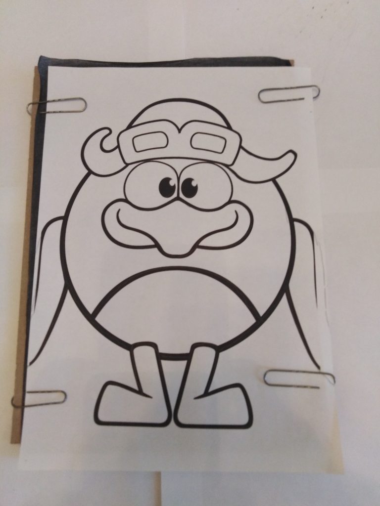 Накладываем копировальную бумагу на картон, по верх размещаем шаблон и всё скрепляем скрепками, как на фото.
