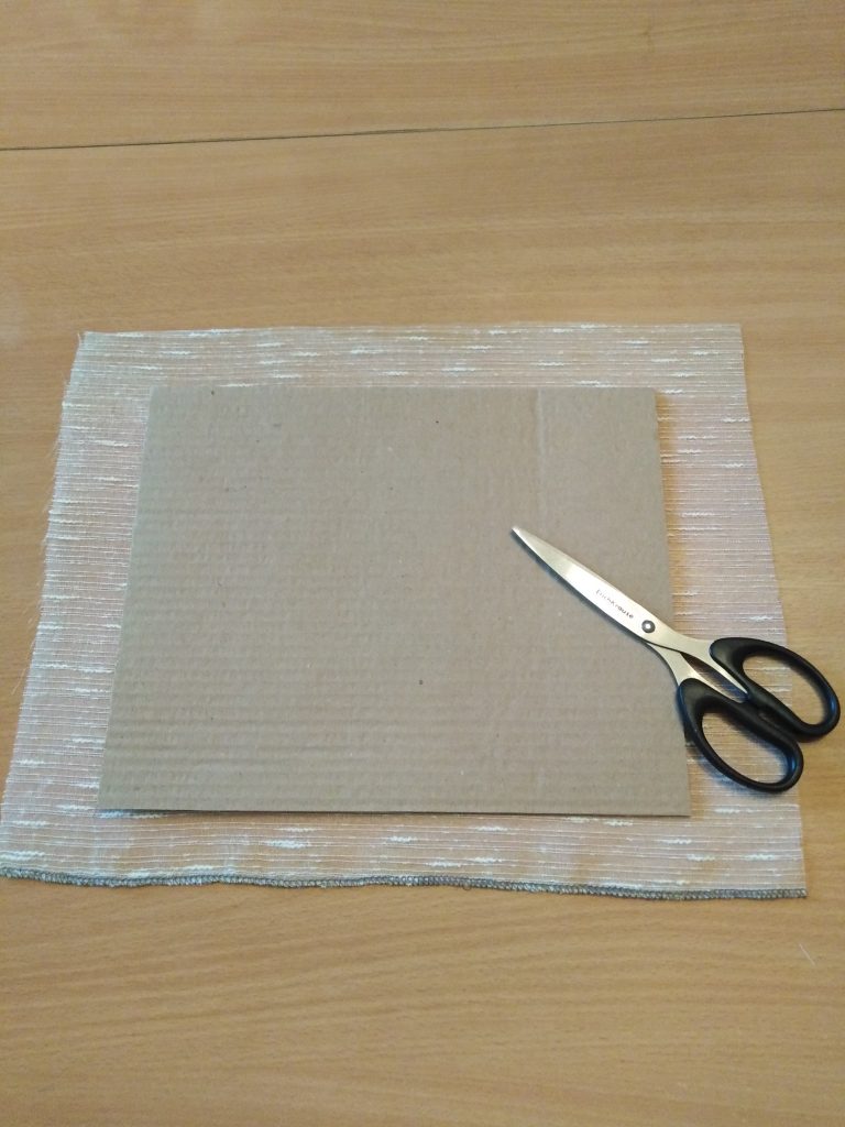 - Вырезаем органзу чуть больше картона.