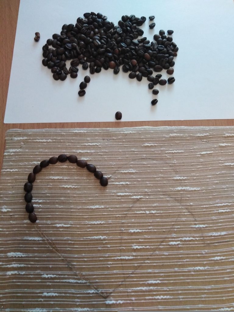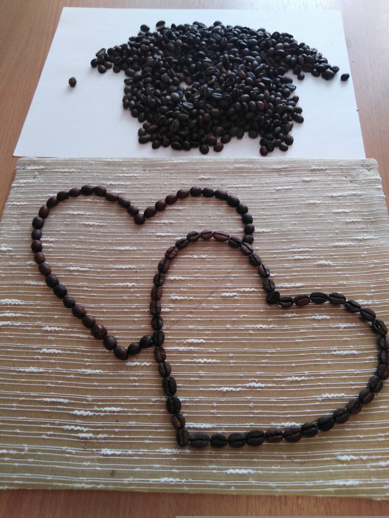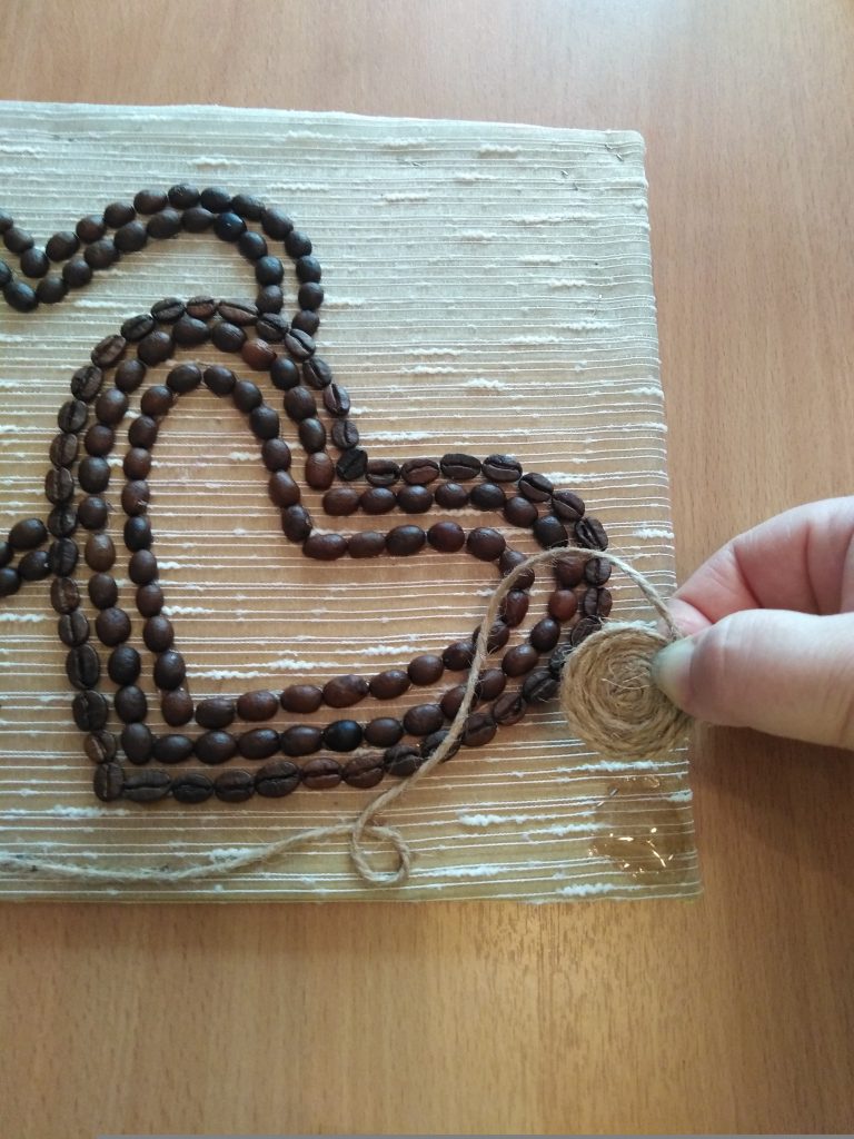 5. Аккуратно выкладываем на клей кофейные зёрна.