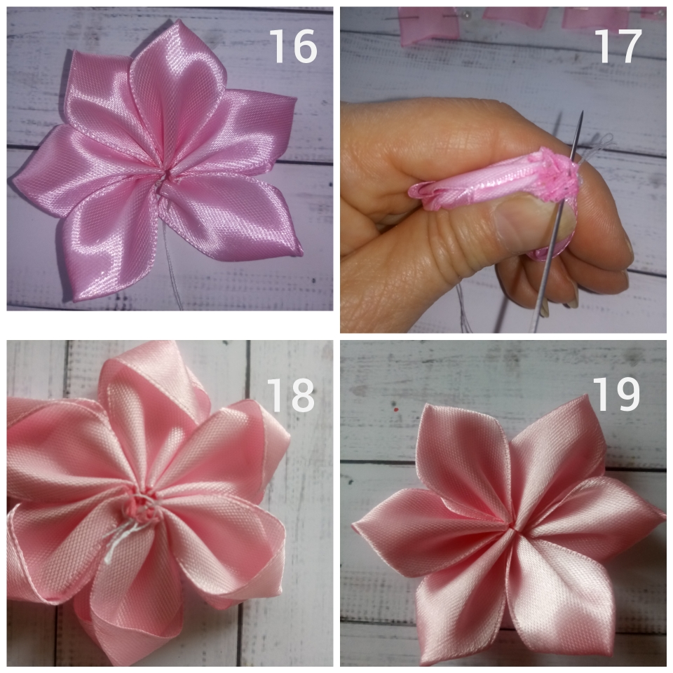 Оставайтесь с нами и у вас получится вот такой красивый «Цветок» из атласной ленты /техника «канзаши»/