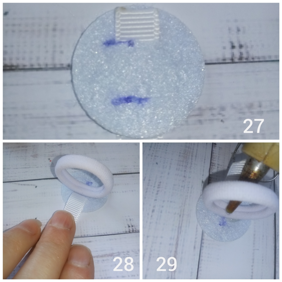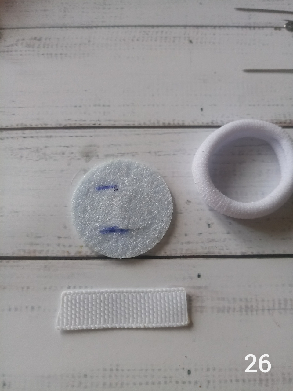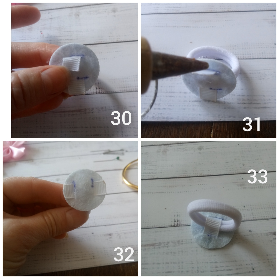 Теперь поэтапно приклеиваем репс.ленту и резинку к фетровой основе