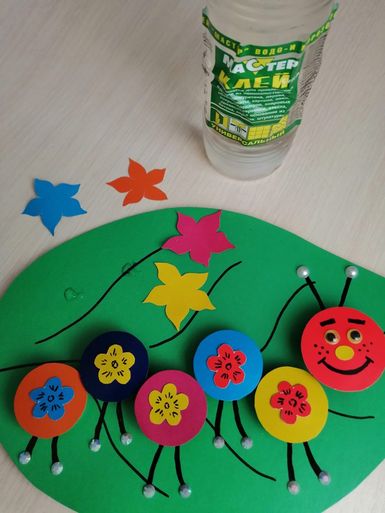 9. Украшаем листок цветочками. Наша весёлая гусеница готова!
