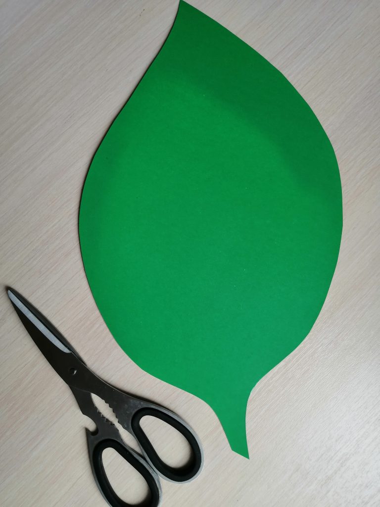 2. Из зелёного картона вырезаем лист, маркером рисуем чёрный контур.