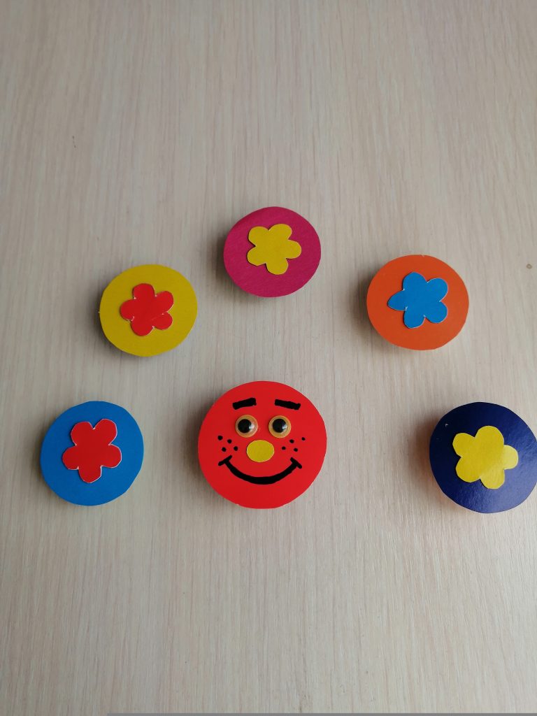 5. На другие круги приклеиваем цветочки предварительно вырезанные из цветного картона.