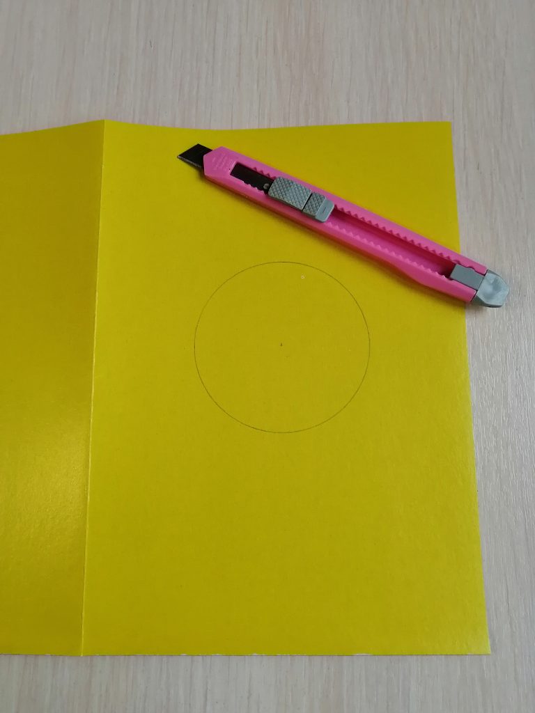 3 На лицевой стороне открытки с помощью циркуля в центре делаем круг.
