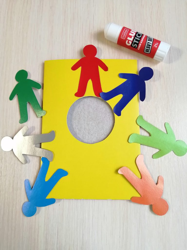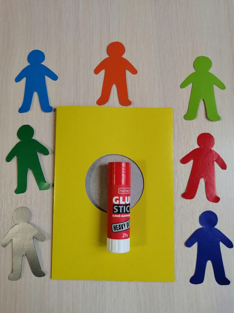 5 Из цветного картона вырезаем по шаблону человечков (разного цвета)