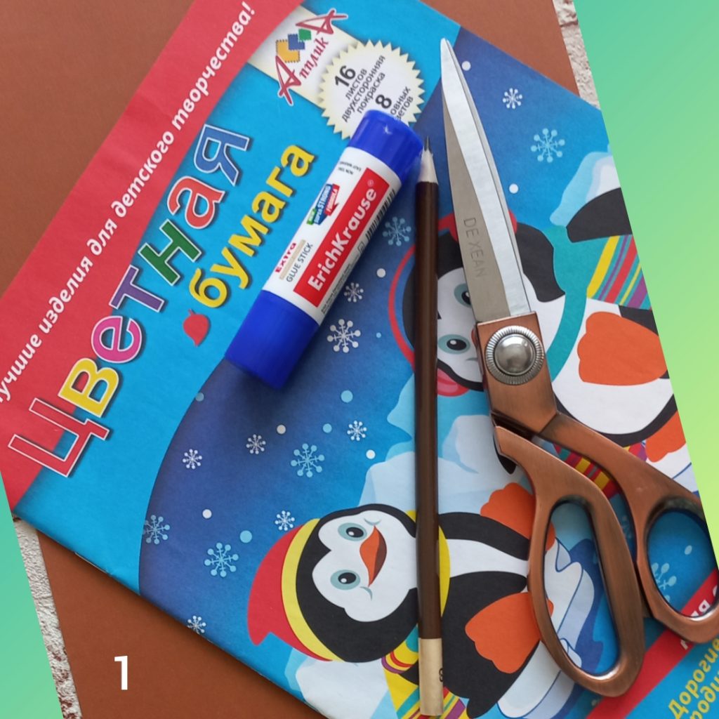 Для работы нам понадобится: Цветная бумага, картон, ножницы, карандаш, клей. /фото 1/