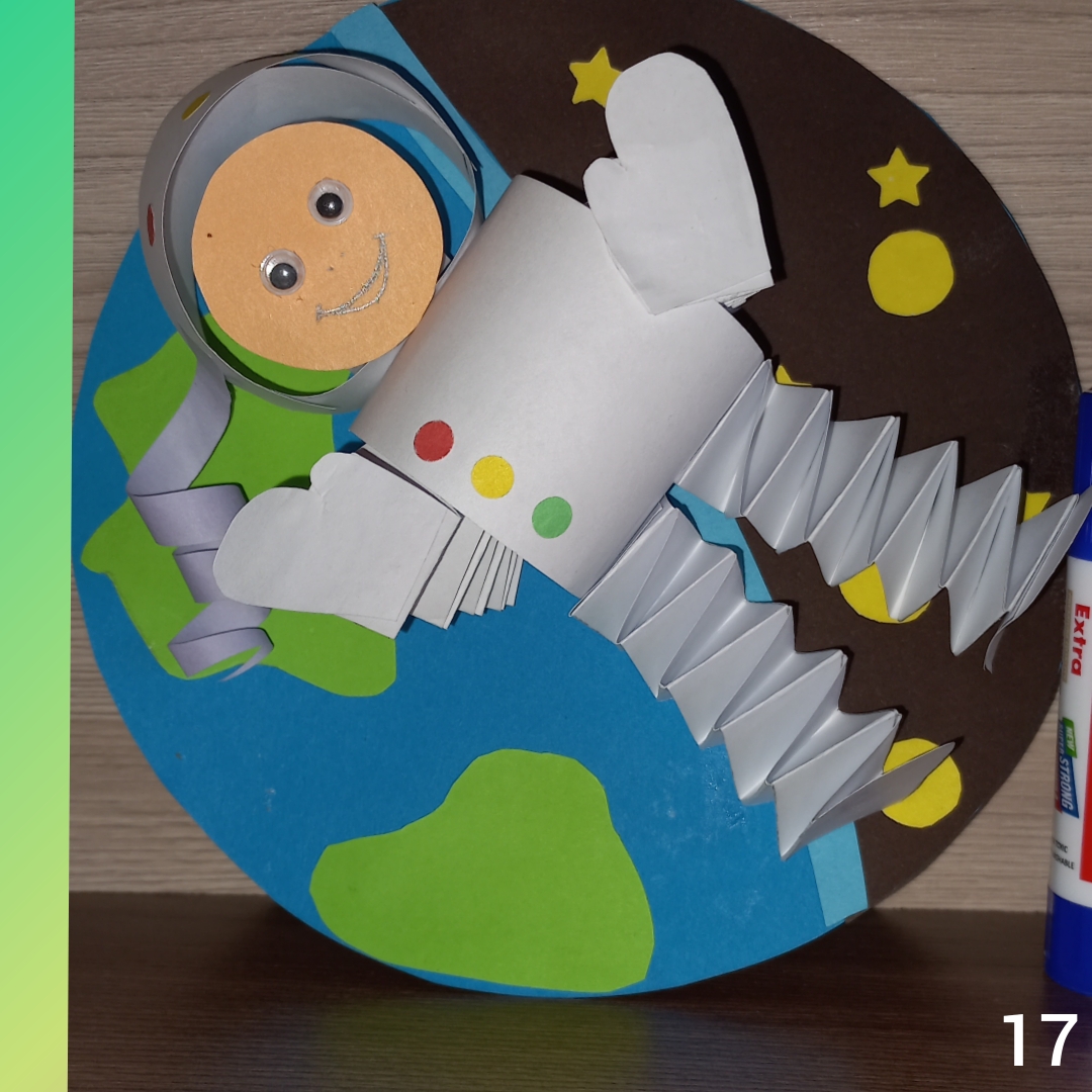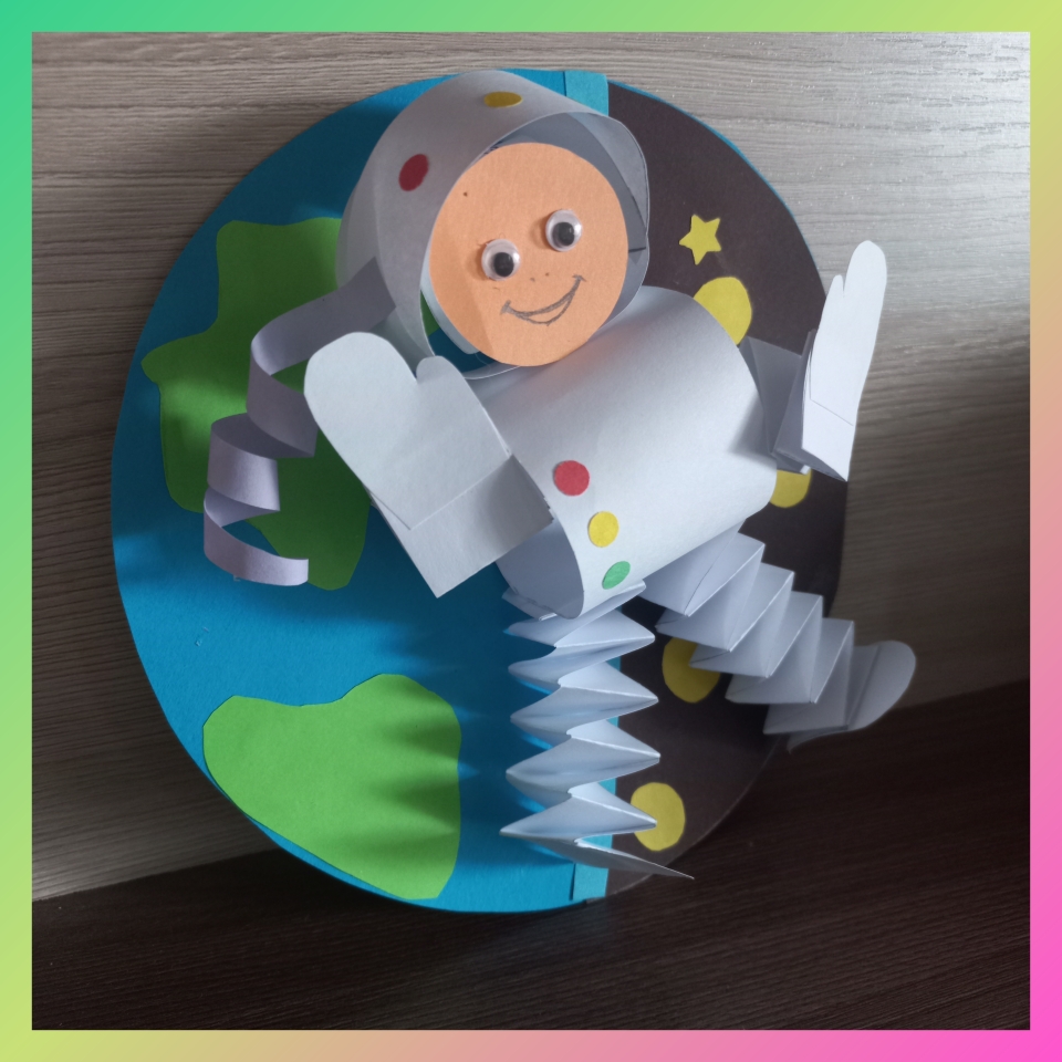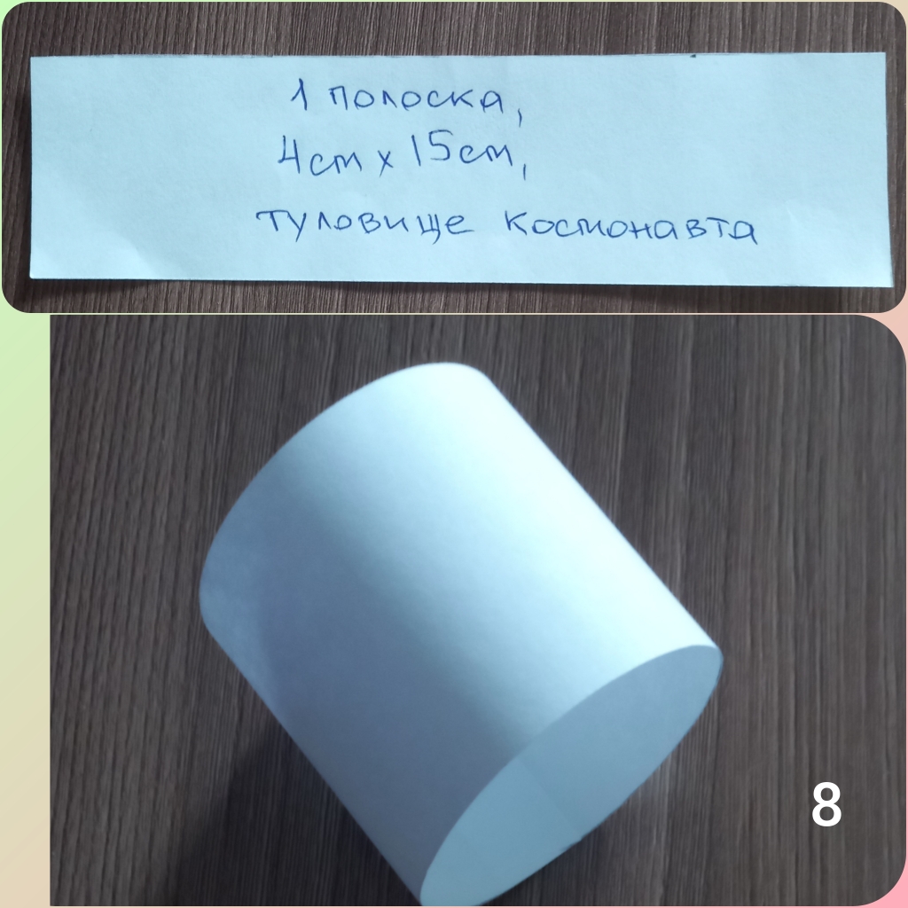 Для рук космонавта, понадобится 4 полоски размером 2см×18см,склеиваем и сворачиваем гармошкой. /фото 6/