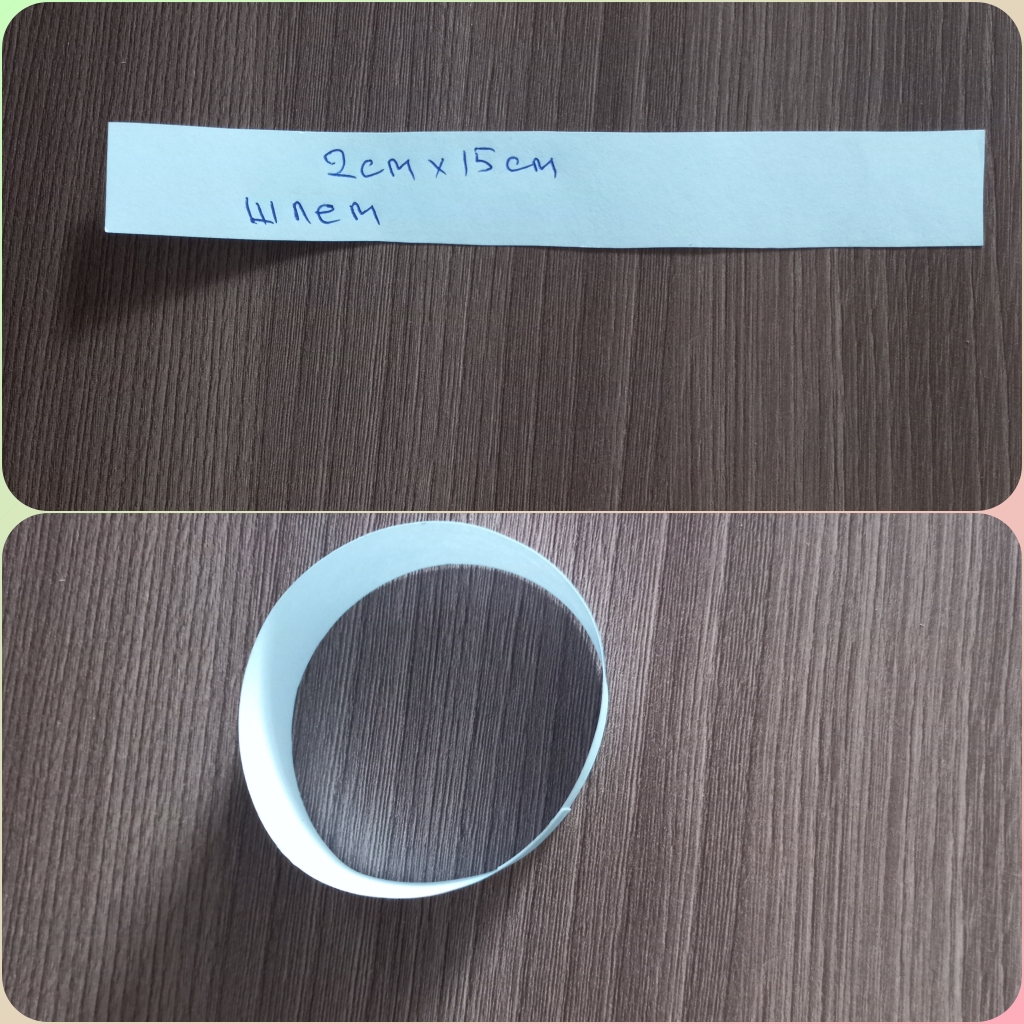Для шлема, вырезаем 1 полоску 2 см×15см,склеиваем так же как и туловище. /фото 9/