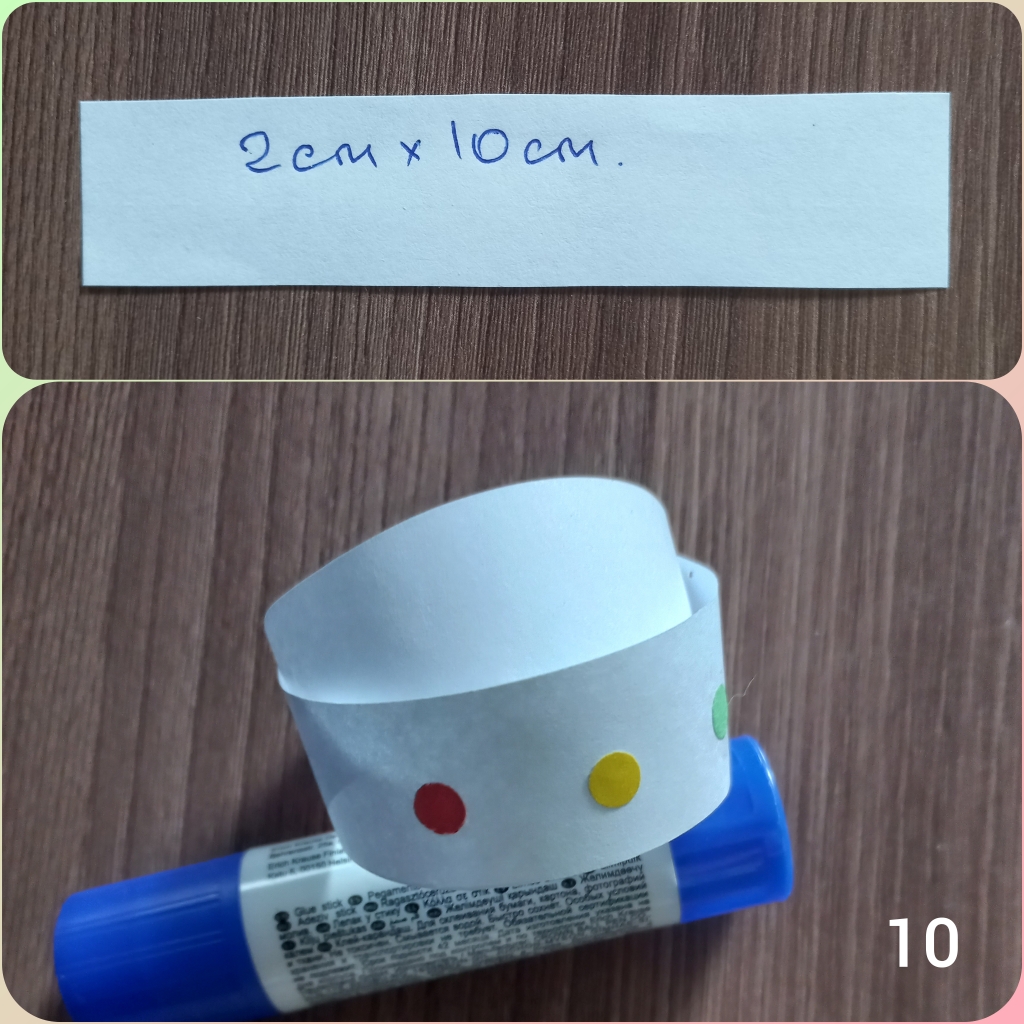 Для изготовления туловища, понадобится 1 полоска размером 4 см×15см.,склеиваем полоску в кольцо. /фото 8/