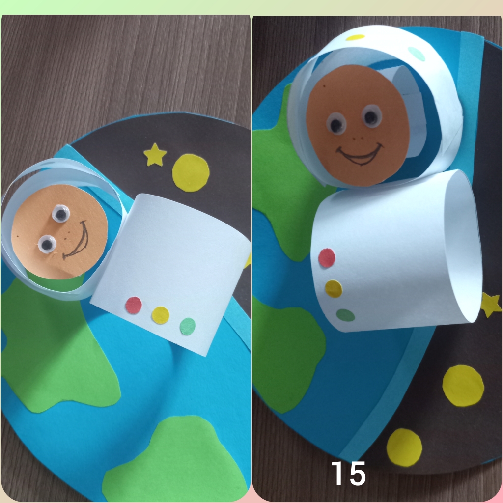Туловище космонавта приклеиваем на готовую основу, украшаем огоньками. /фото 13/